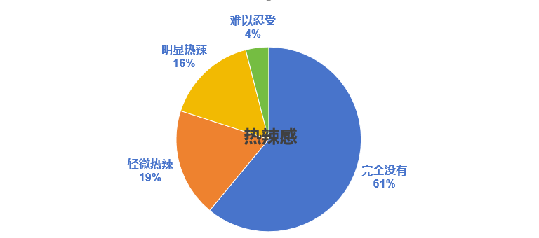 拿“温和型”的享久三代为例,明显感觉热辣感的占比是16%,难以忍受的占比是4%。